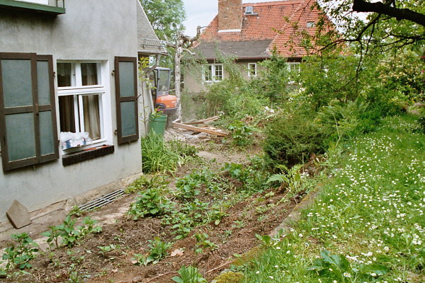 2005 kam wenigstens ein provisorischer Weg ums Haus - von Blumen noch keine Spur